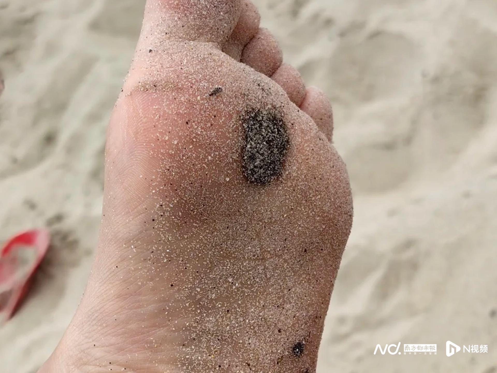 来自南山的市民王先生向奥一新闻记者暗示,其曾在5月下旬携家东谈主来大梅沙游玩,彼时岸边水域中庸沙滩上照实存在玄色油渍。“其时我没太注重,但回家后发现小孩的脚底和泳衣上沾了玄色的东西,用洗衣液清洗了几遍都还有印迹。”