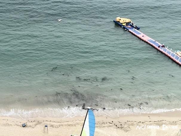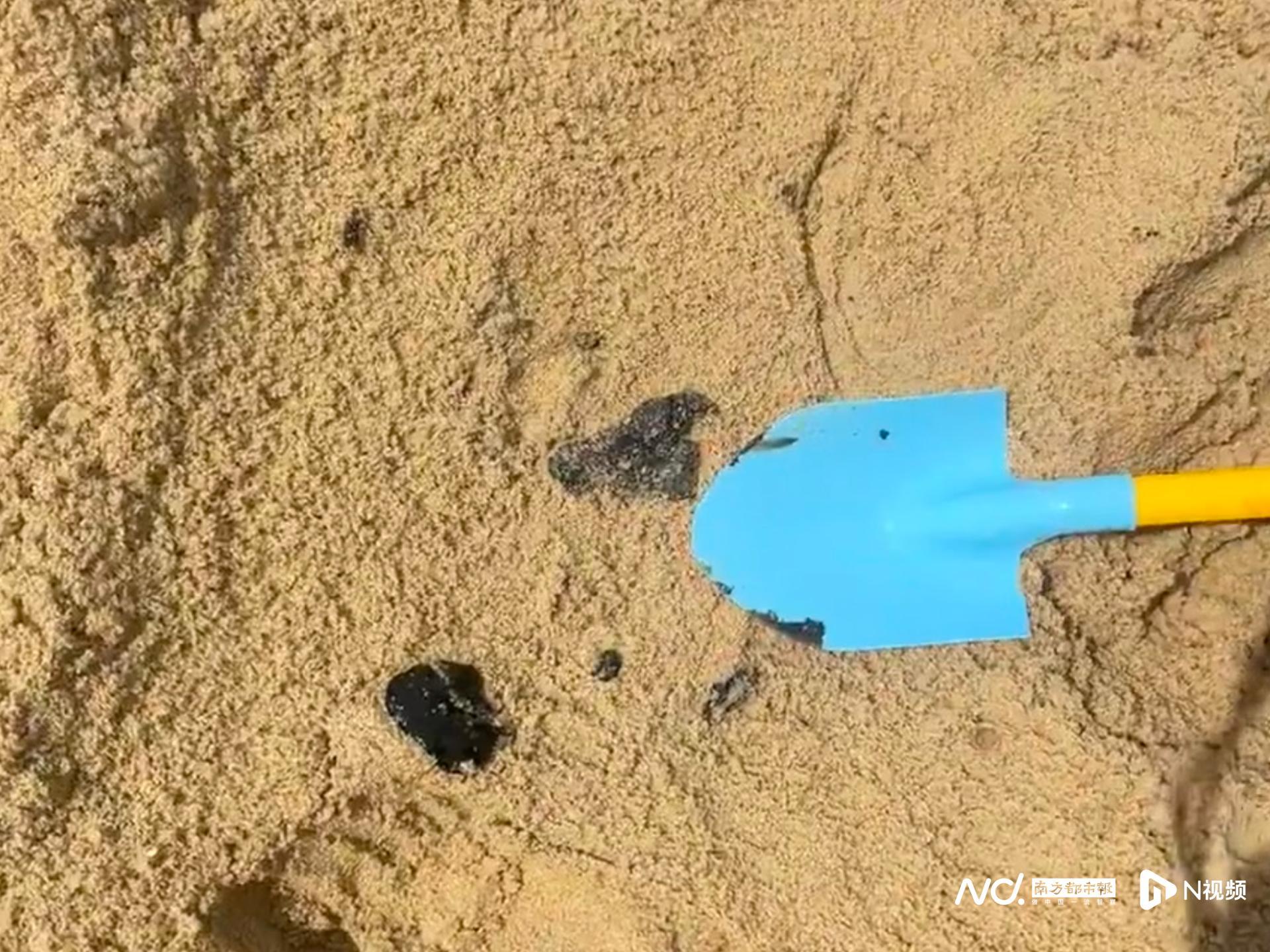 张女士向记者出示了其拍摄的像片和视频,画面中,海水呈现出不均匀的神采,几处水面飘舞着深褐色的物资,岸边沙滩上则分布着些许大小不一的玄色粘块。“其时还觉得是海藻或者垃圾,仔细一看才发现是油状的东西,摸上去很黏,滋味也很刺鼻。”