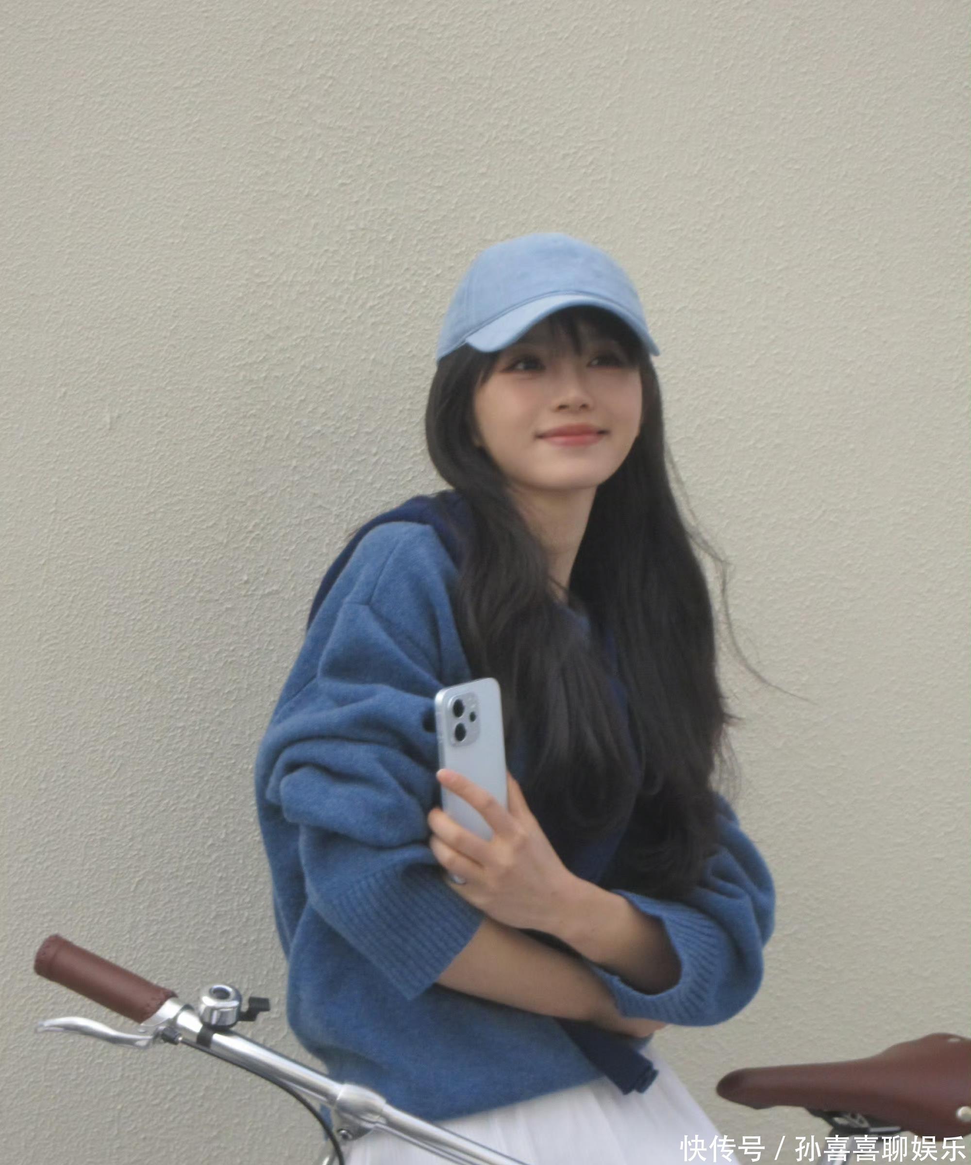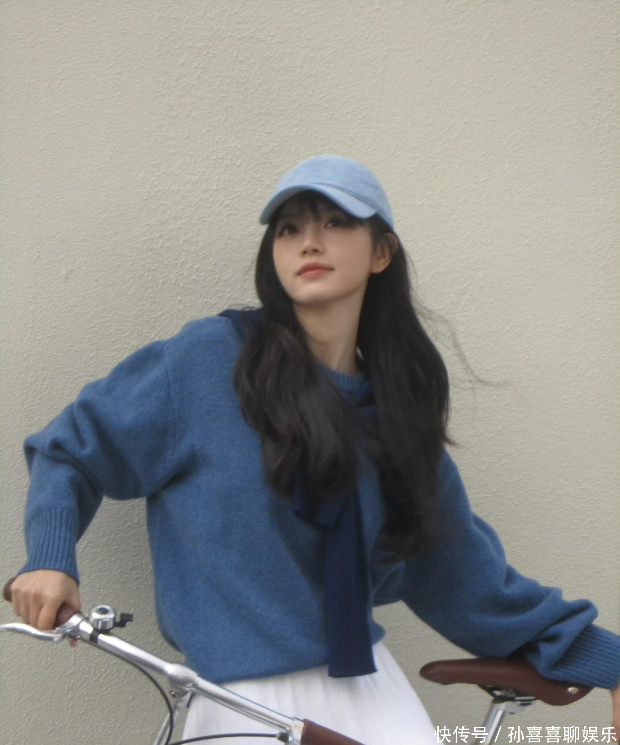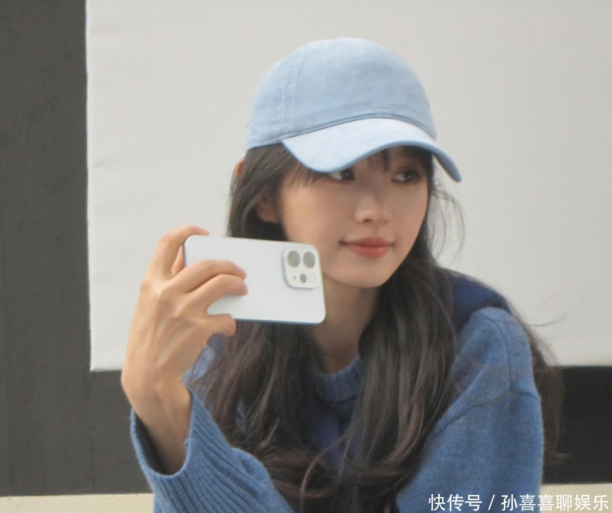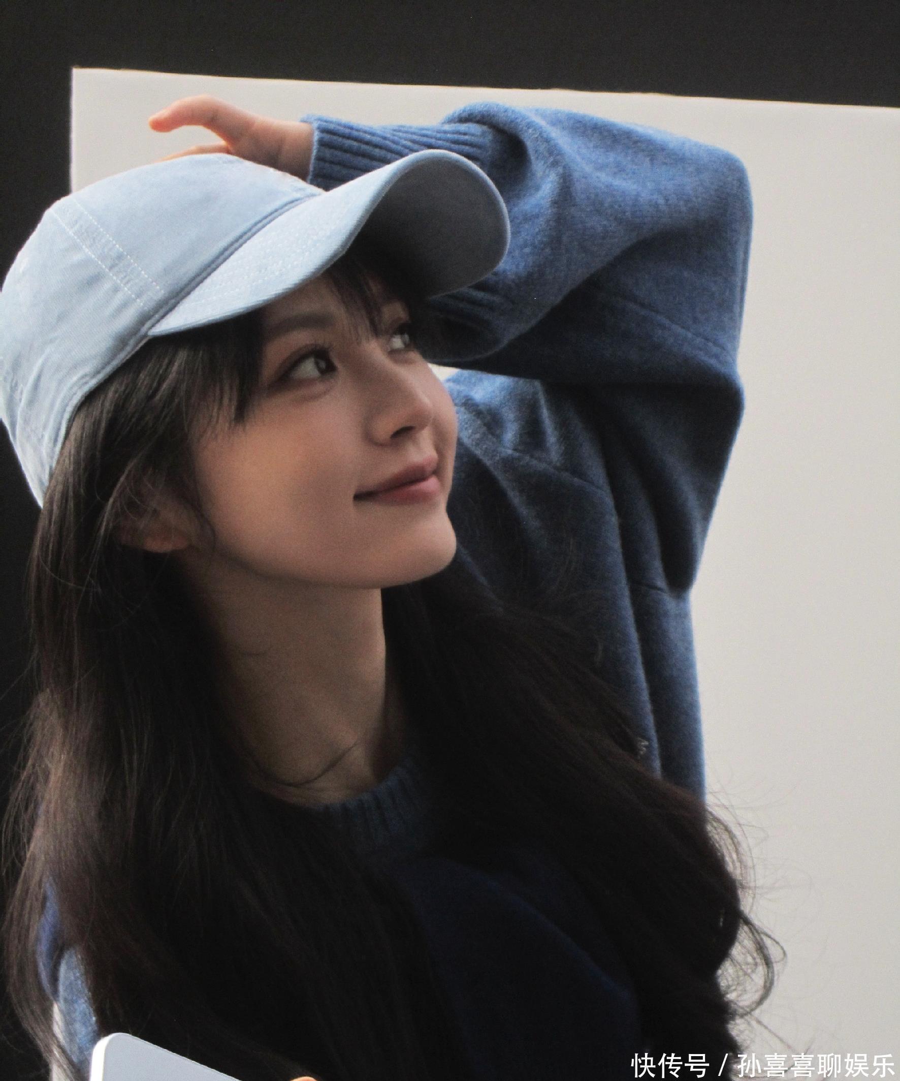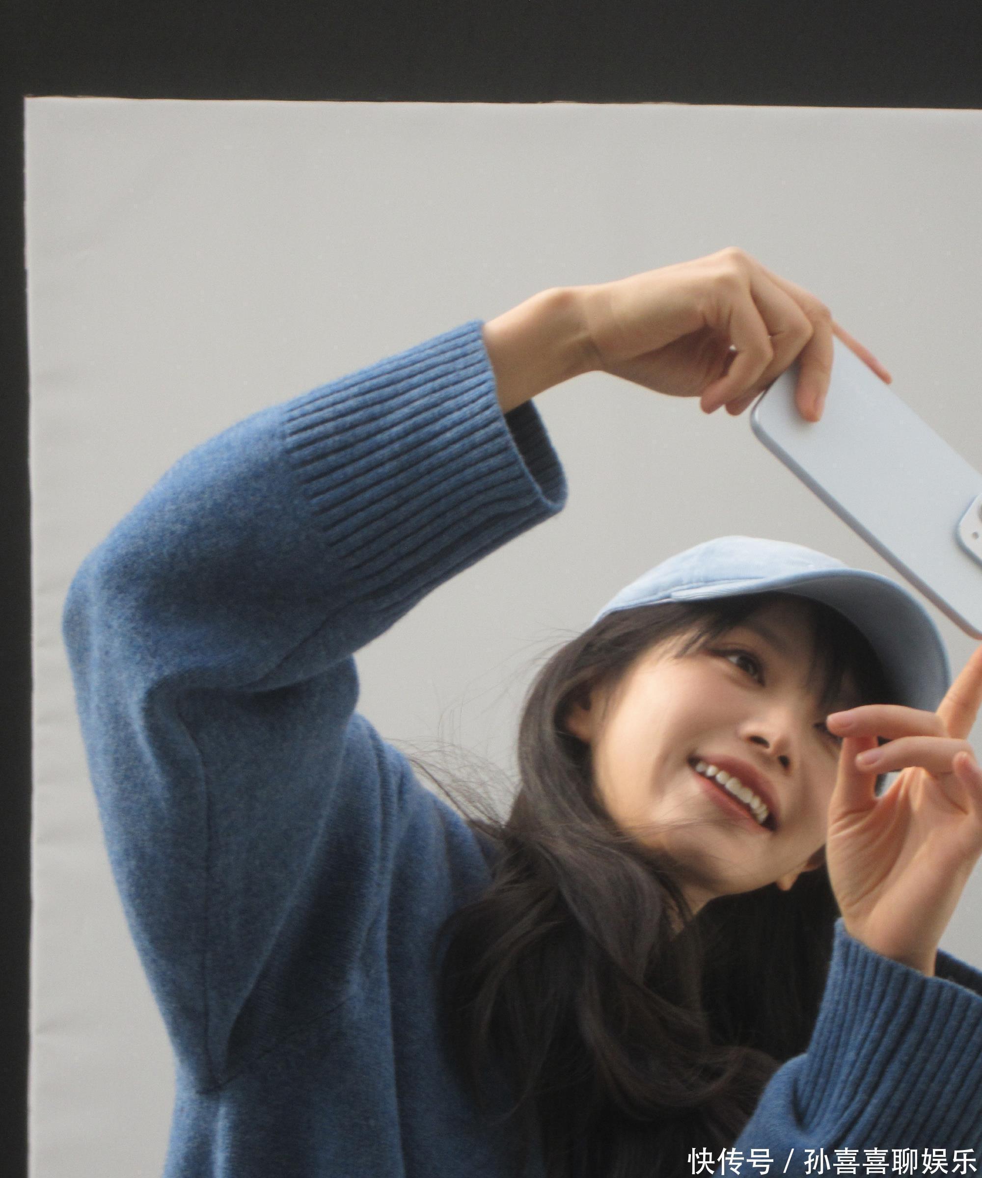 浅蓝棒球帽扣着蓬松长发,独处宝蓝色真挚毛衣宽松欢然,抬手举入部下手机自拍时,眉眼弯弯,笑意慵懒。