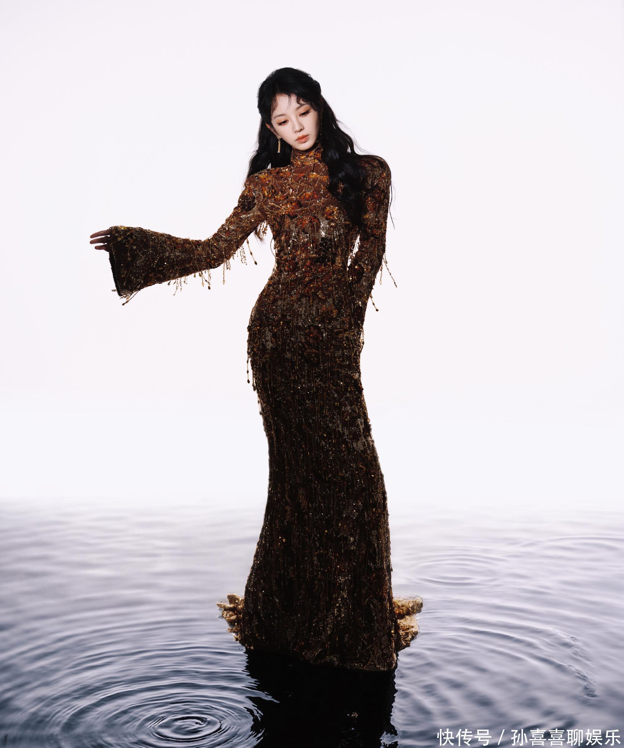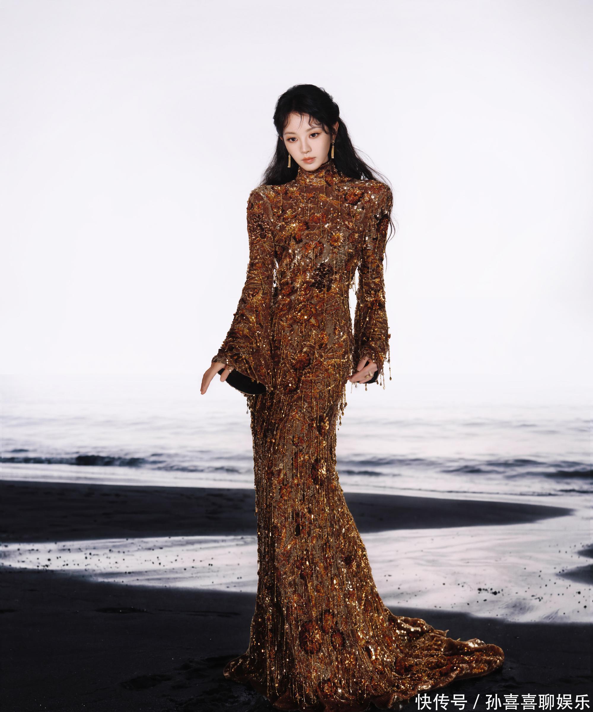 而这身鎏金征服,以硬朗的廓形、能干的金属质感,配上她千里稳大气的姿态,顷刻间剥离了甜妹的娇俏感,尽显训练女性的优雅气场,也让民众明白感受到,她的造型可塑性远不啻“甜柔”二字,而是能在多元作风中自如切换。